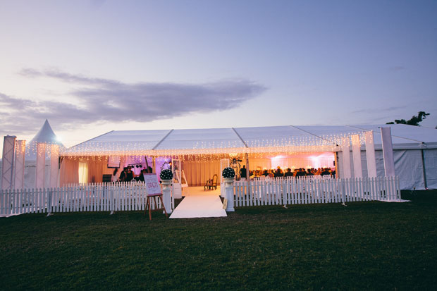 We tried to create a 1950s-inspired day of elegance, because I love everything Audrey. My mum and I collected vintage crystal, English china and lace doilies from antique shops everywhere, to decorate our marquee tables. Rohan and I love going to the races with our parents so we couldn’t think of a more suitable venue for our reception; plus having a marquee meant that we could start with a blank canvas and style from our white carpet up to our crystal chandeliers! We really tried to have lots of personal touches ... table numbers were hand-embroidered by my bridesmaids and my nanna helped us to make batches of home-made raspberry jam for bonboniere!